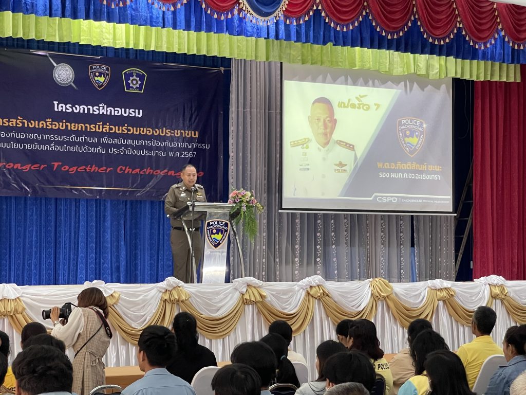 กต.ตร.สภ.พนมสารคาม และ ผกก.สภ.พนมสารคาม ร่วมพิธีเปิดการฝึกอบรมเครือข่ายการมีส่วนร่วมป้องกันอาชญากรรม