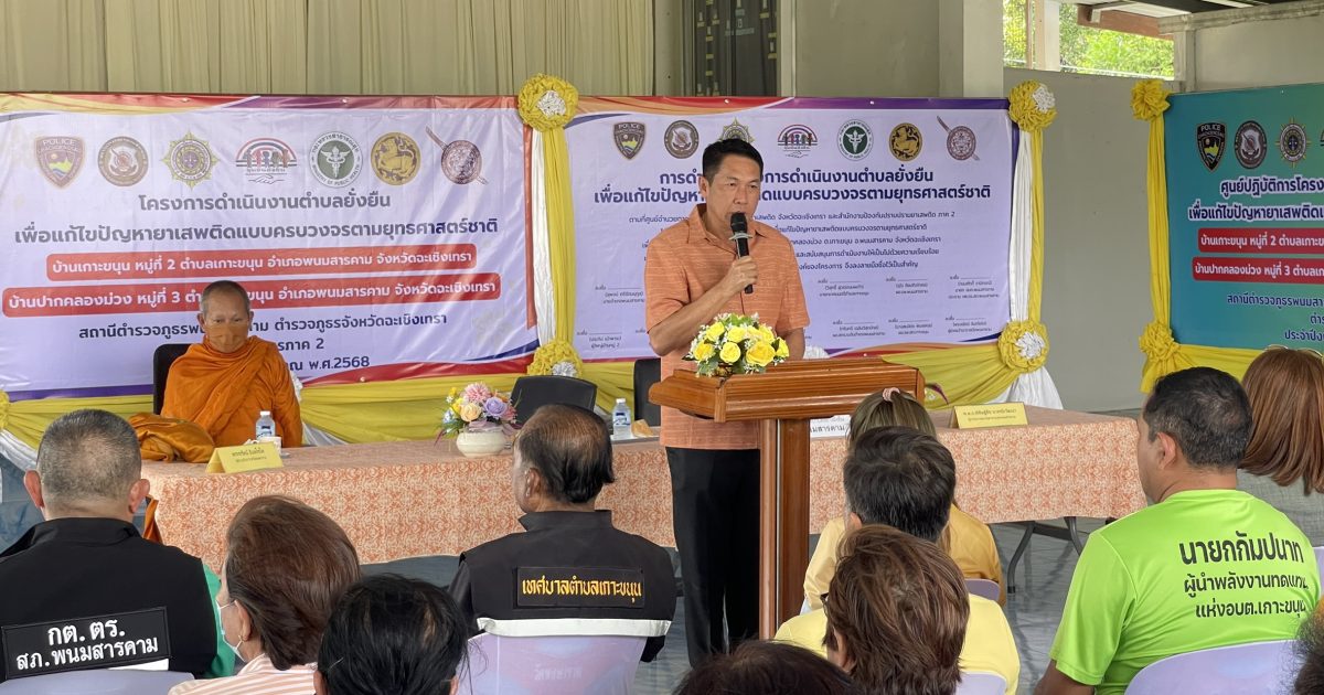 วันนี้ 12 มี.ค. 2568 เวลา 16.00 น. นายสุพจน์ ตรีรัตนานุกูลนายอำเภอพนมสารคาม เป็นประธานพิธีเปิดโครงการดำเนินงานชุมชนยั่งยืน เพื่อแก้ไขปัญหายาเสพติดแบบครบวงจรตามยุทธศาสตร์ชาติ
