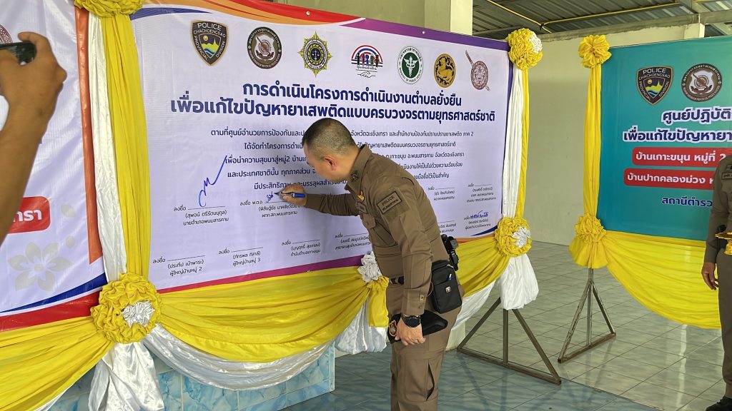 พร้อมชุด ปฏิบัติการ ฯ ภาคีเครือข่ายในพื้นที่ ,ประชาชนบ้านเกาะขนุน หมู่ที่ 2 และประชาชนบ้านปากคลองม่วง หมู่ที่ 3 ต.เกาะขนุน อ.พนมสารคาม จ.ฉะเชิงเทรา ให้การต้อนรับ พร้อมกันนี้ได้มีการร่วมลงนาม MOU โดยหัวหน้าส่วนราชการและผู้นำชุมชนภาคีเครือข่ายในพื้นที่ดังนี้