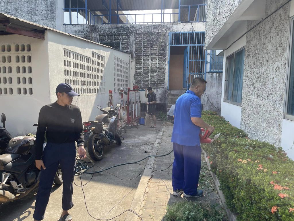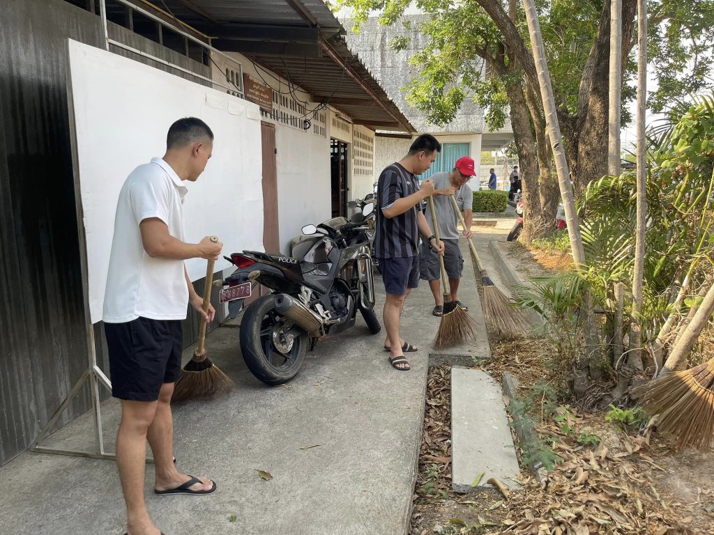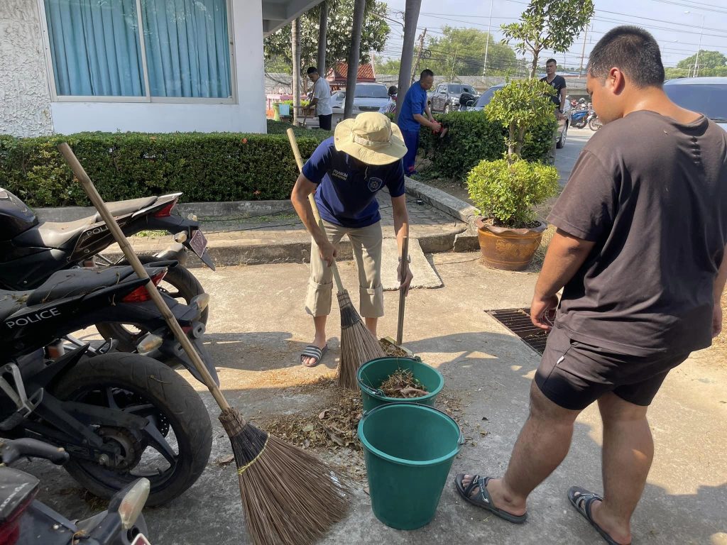 ผกก.สภ.พนมสารคาม นำข้าราชการตำรวจ ทำความสะอาดโรงพัก