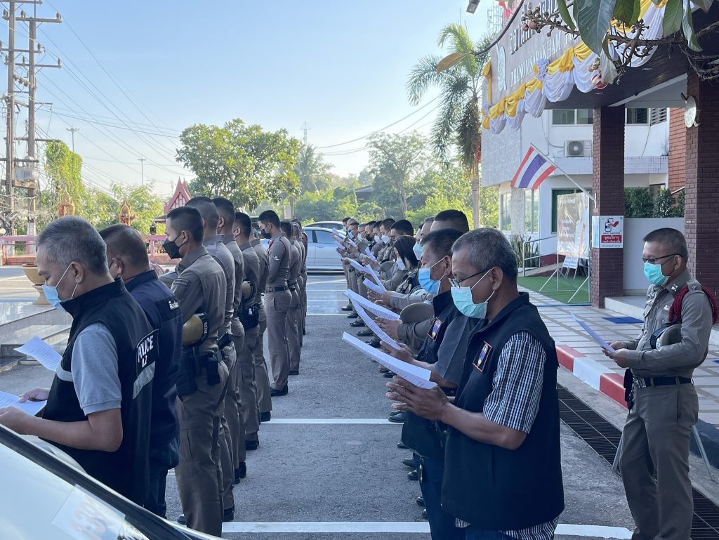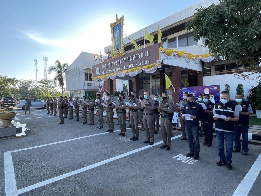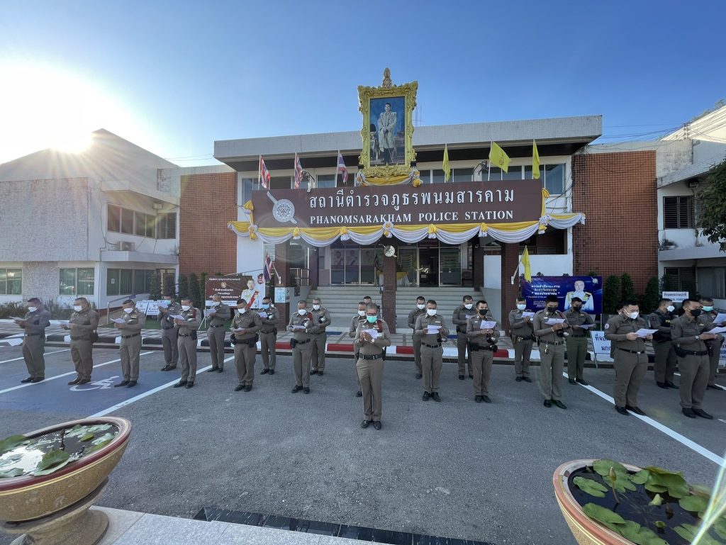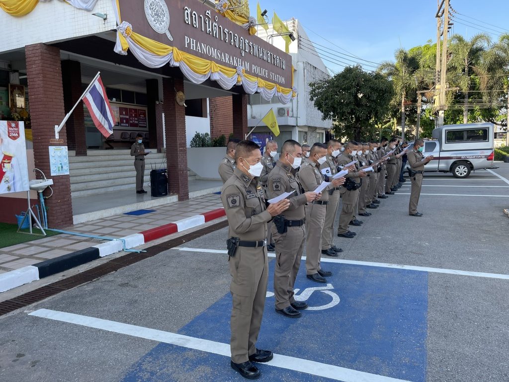 ได้นำข้าราชการตำรวจในสังกัด สภ.พนมสารคาม เข้าแถวเคารพธงชาติ ตรวจเครื่องแต่งกายทรงผม และร่วมกันตั้งจิตอธิษฐานสวดมนต์บทโพชฌังคปริตร กราบถวายพระพรขอให้ สมเด็จพระเจ้าลูกเธอ เจ้าฟ้าพัชรกิติยาภา นเรนทิราเทพยวดี กรมหลวงราชสาริณีสิริพัชร มหาวัชรราชธิดา ขอให้พระองค์ทรงหายจากพระอาการประชวรโดยเร็ว