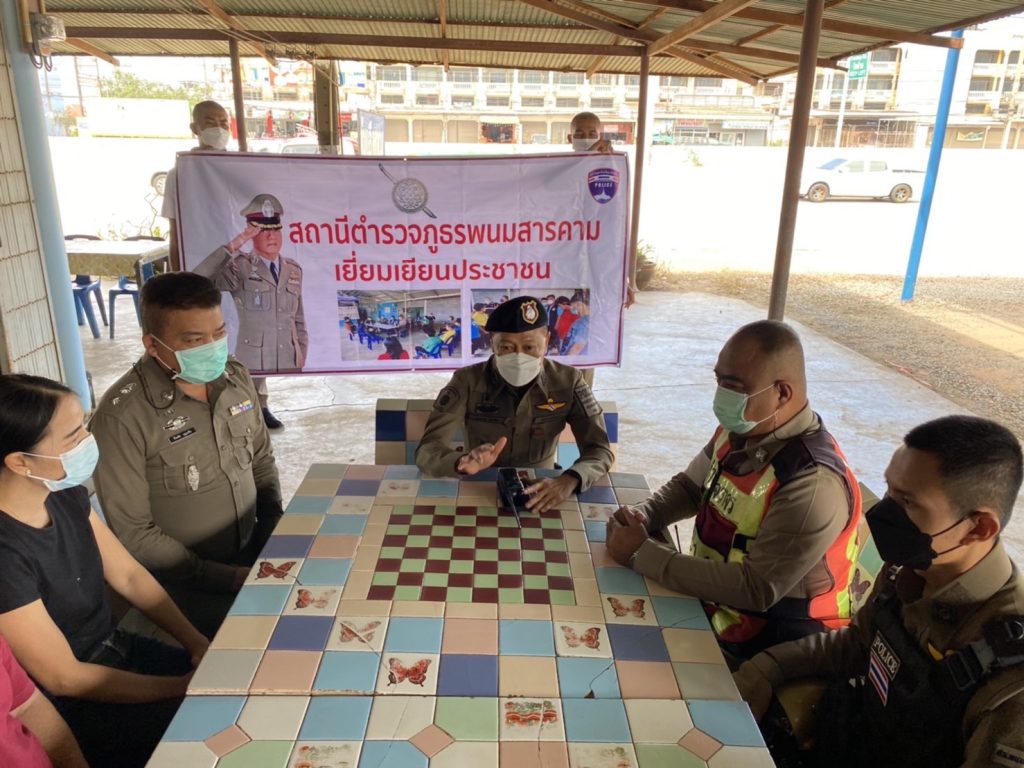 วันที่ 10 พฤศจิกายน 2565 เวลา 11.00 น. พ.ต.อ.สมชาย เมืองใย ผกก.สภ.พนมสารคาม พร้อมด้วย พ.ต.ท.ธีระชัย บุญเสริม สวป.สภ.พนมสารคาม นำเจ้าหน้าที่ตำรวจ สภ.พนมสารคาม งานป้องกันและปราบปราม,งานจราจร และนักเรียนนายสิบตำรวจฝึกปฏิบัติราชการ ร่วมเยี่ยมเยียนประชาชน ตามนโยบายของผู้บังคับบัญชา ในพื้นที่พนมสารคาม บริเวณร้านเบญจาโภชนา โดยได้ให้ความรู้ทางด้านกฎจราจรเบื้องต้นและแนะนำวิธีป้องกันตนจากอาชญากรรมต่าง ๆ