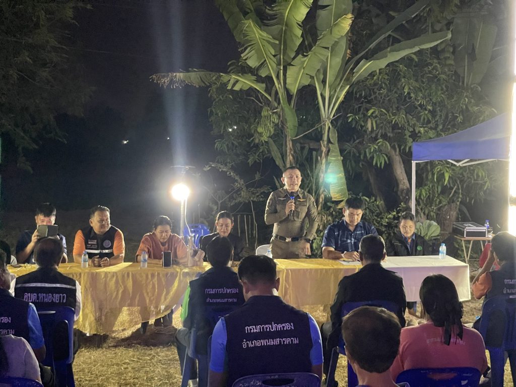ผกก.สภ.พนมสารคามพร้อมด้วย นางปิณฑิรา เก่งการพานิช นายอำเภอพนมสารคาม, นายคเชนทร์ บุญประเสริฐ นายก อบต.หนองยาว ,นางพิศมัย ตั้งชูทวีทรัพย์ กำนันตำบลหนองยาว,เจ้าหน้าที่ฝ่ายปกครอง,เจ้าหน้าที่รพ.สต.หนองยาว,เจ้าหน้าที่เกษตรอำเภอฯ, ผู้ใหญ่บ้านทุกหมู่ตำบลหนองยาว ประชุมเพื่อรับทราบปัญหาต่างๆที่เกิดขึ้นภายในหมู่บ้าน ที่ประชาชนอยากให้ ร่วมกันแก้ไขปัญหา