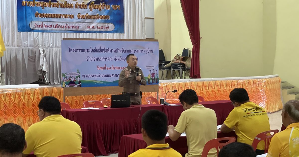 ผกก.สภ.พนมสารคาม เเป็นวิทยากร โครงการอบรมไกล่เกลี่ยข้อพิพาท สำหรับคณะกรรมการหมู่บ้าน