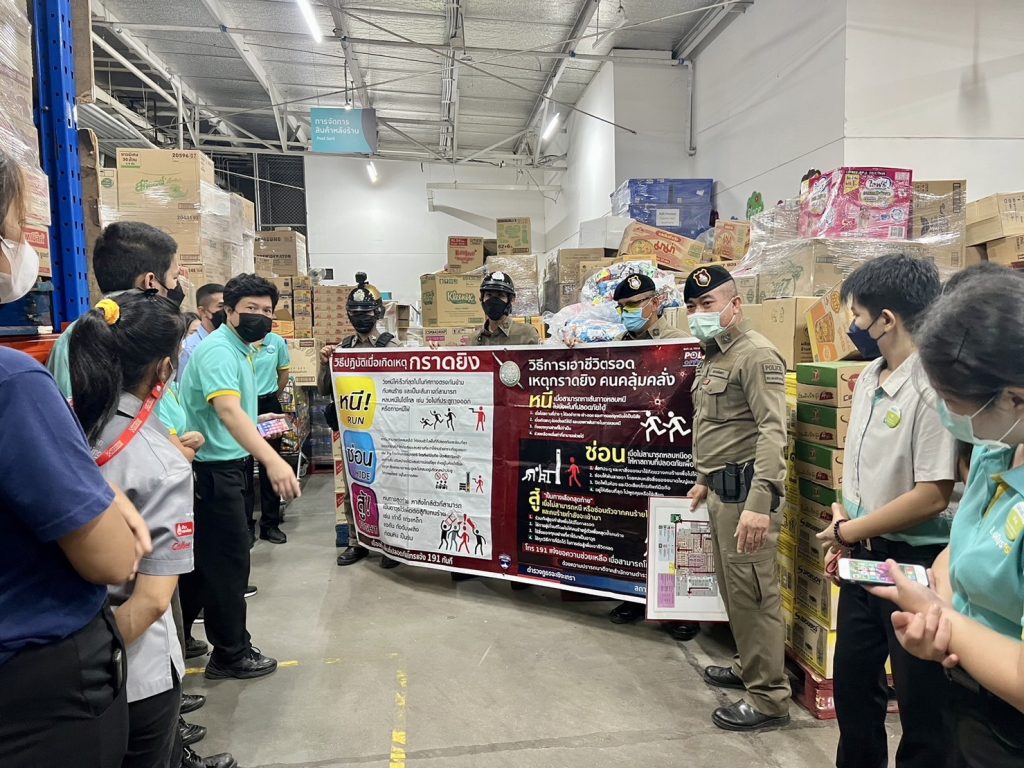 ผกก.สภ.พนมสารคาม สั่งการให้ พตท ประยูร ปักอินทรีย์ รอง ผกก.ป.สภ พนมสารคาม ,ร.ต.อ. พีรวิทย์ คำสวัสดิ์ รอง สวป.สภ.พนมสารคามประชาสัมพันธ์ให้ความรู้การเอาตัวรอดเมื่อมีเหตุกราดยิง(Active Shooter)แก่พนักงานห้างสรรพสินค้าโลตัสสาขาพนมสารคาม ประมาณ 30 คน พร้อมทั้งให้ช่องทางการติดต่อเมื่อมีเหตุต่างๆ