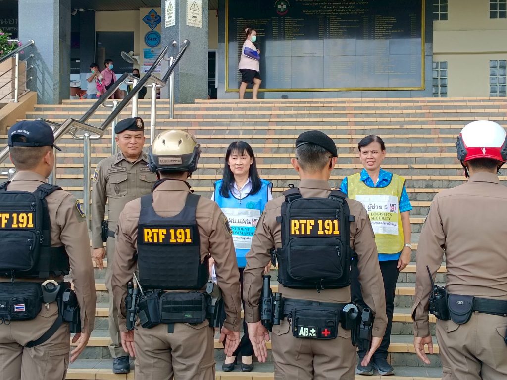 วันที่ 12 กันยายน 2568 เวลา 15.00 น. พ.ต.ท.ธีระชัย บุญเสริม สวป.สภ.พนมสารคาม พร้อมด้วยเจ้าหน้าที่ตำรวจจราจร ร่วมประชุมซักซ้อมแผนเผชิญเหตุร่วมกับแพทย์หญิงอุไร ศิลปกิจโกศล ผอ.โรงพยาบาลพนมสารคาม และเจ้าหน้าที่โรงพยาบาล กรณีเกิดเหตุเพลิงไหม้ ที่โรงพยาบาลพนมสารคาม